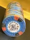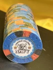 This is a fantastic opportunity to own a set of 25 original U.S. Navy challenge coins/casino chips. The coins are full sealed in their original packaging, ensuring their authenticity and quality. These coins are a great addition to any militaria collection, with their unique design and historical significance. The coins were manufactured in the United States, and their theme is militaria. They are perfect for collectors or anyone interested in military history. The coins are in excellent shape, with no signs of wear or damage. This is a rare opportunity to own a piece of history, and I hope you don't miss out on it. W-1