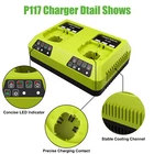 Product Description # For Dual Charger For Ryobi Specifications: 1.Type: Replacement P108 Battery charger (No Battery Included) 2.Input: 100V--240V 3.Output Volt: 12V--18V 4.Output Current: 6A 5. Charge : Ni-Mh Li-ion NI-CD Compatible with: For Ryobi 12V-18V Lithium-Ion & Ni-Cd NIMh Batteries Compatible with Battery Model: Ryobi 12V NiCad Battery: 1400143, 1400652, 1400652B, 1400670, 4400005, B-8286, BPT1025, RY-1204 Ryobi 18V Lithium Battery: BPL-1815, BPL-1820G, BPL18151, BPL1820, P102, P103, P104, P105, P106, P107, P108, P109, P122, P161, P162, P164, P189, P190, P191, P192, P193, P194, P197 Ryobi 18V NiMh Battery: 130224028, 130224007, 130255004, ABP1801, ABP1803, BCP1817/2SM, BPP- 1813, BPP-1815, BPP-1817, BPP-1817/2, BPP-1817M, BPP-1820 Ryobi 18V NiCad Battery: P100, ABP1803, BPP-1813, BPP-1815, BPP-1817, BPP-1817/2, BPP-1817M, BPP-1820, BPP1817M Multi-Protections: 1.Overheat protection: stop charging when overheat. 2.Overcharge protection: stop charging when charging too much. 3.Short-circuit protection: charger Auto Cut off when Short-circuit. 4.Stop charging when charger faulty detected. Package Includeds: 1X Dual-Charger For RYOBI P108 18V One+ Plus High Capacity Lithium-Ion Battery (No Battery Included) # For P117 Single Charger Specification: Product Type: Replacement Dual Chemical Ryobi Battery Charger Brand: For Ryobi 12V -18V Compatible with: Li-ion,Ni-MH & Ni-Cd battery Chemistry: Battery Charger Model No.: P117 Condition: Brand new Input: AC 110V - 240V Output: Voltage 12V - 24V; 4Ah Compatible with OEM Battery Model: 🔋for Ryobi 12V and 18V MAX One Plus Ni-Cad, Ni-Mh & Lithium-Ion Battery Charger P117 (Not work with 12V lithium-ion Battery) 🔋Ryobi 18V Lithium Battery: BPL-1815, BPL-1820G, BPL18151, BPL1820, P102, P103, P104, P105, P106, P107, P108, P109, P122, P161, P162, P164, P189, P190, P191, P192, P193, P194, P197 🔋Ryobi 18V NiMh Battery: 130224028, 130224007, 130255004, ABP1801, ABP1803, BCP1817/2SM, BPP-1813, BPP-1815, BPP-1817, BPP-1817/2, BPP-1817M, BPP-1820 🔋Ryobi 18V NiCad Battery: P100, ABP1803, BPP-1813, BPP-1815, BPP-1817, BPP-1817/2, BPP-1817M, BPP-1820, BPP1817M 🔋Ryobi 12V NiCad Battery: 1400143, 1400652, 1400652B, 1400670, 4400005, B-8286, BPT1025, RY-1204 🔋 Ryobi 18V One Plus Lithium-Ion Battery Charger P117 (Not work with 12V lithium-ion Battery) 🔋 Ryobi 18V Lithium Battery: BPL-1815, BPL-1820G, BPL18151, BPL1820, P102, P103, P104, P105, P106, P107, P108, P109, P122, P161, P162, P164, P189, P190, P191, P192, P193, P194, P197 NOT Compatible with 🔋 Ryobi 18V NiMh Battery: 130224028, 130224007, 130255004, ABP1801, ABP1803, BCP1817/2SM, BPP-1813, BPP-1815, BPP-1817, BPP-1817/2, BPP-1817M, BPP-1820 🔋 Ryobi 18V NiCad Battery: P100, ABP1803, BPP-1813, BPP-1815, BPP-1817, BPP-1817/2, BPP-1817M, BPP-1820, BPP1817M 🔋 Ryobi 12V NiCad Battery: 1400143, 1400652, 1400652B, 1400670, 4400005, B-8286, BPT1025, RY-1204 Package Included: 1 * Replacement P117 Battery Charger For Ryobi 12V-18V Lithium-Ion & NiCad NiMh Battery Instruction manual of battery charger: ✔Red Solid -- Stand by ✔Red Flashing Fast -- Evaluating (Charger evaluates battery until battery reaches normal voltage, then begins charge mode.) ✔Red Solid and Green Flashing Fast -- Charging ✔Red Solid and Green Solid -- Fully Charged ✔Green Flashing Slow -- Energy save mode (Battery pack is fully charged and charger is in energy save mode.) ✔Orange Flashing Slow -- Hot/Cold battery ✔Red Flashing Slow -- Defective (Battery or charger is defective) About Us Welcome to our store! We are a professional worldwide wholesale company. High product quality, reasonable prices, excellent customer service and a reliable credit standing is our tenet.If you like our products, please add my eBay shop to your "My Favorites" list. All the products we are selling include factory warranty , don’t cover items that have been abused, burned and damaged in any form. Payment We accpet payment via PayPal only . Import duties,taxes and charge are not included in the item's price or shipping cost.These charges are the buyer's responsibility. Please check with your country's customs office to determine what these additional costs will be prior to bidding or buying. Insurance is included in the Shipping & Handling costs paid. Shipping Items are generally shipped out in 1-3 business day after your payment has been cleared (Sat. & Sun. excluded.) Orders from the United States Warehouse will be shipped out via USPS or UPS. The shipment usually takes 3-7 business days(Saturday and Sunday excluded), if you need the item urgently, please contact us for detail before purchasing. Local pick up is not available. Orders from China will be shipped via Belgian Post or Post NL.The shipment will take 15-35 working days,please contact us if you didn't get the parcel for a long time. We do not ship to APO, FPO, Alaska, Hawaii and Puerto Rico addresses, and we are unable to ship to PO BOX for this item. Please provide your psychical address. Returns You have 60 days to return it from the date it was received. All returned items must be in the original package and you must provide us with the shipping tracking number,specific reason for the return and your ebay ID. We will refund your full winning bid amount , upon receipt of the item in its original condition and package with all components and accessories included. Contact Us Dear buyers,we appreciate your business, if you are satisfied with our service , please leave us a Positive feedback and rate the details of the transaction (Detailed Seller Ratings) with a " Pefect Stars ". We aim to provide best services and products in exchange your maximum statifaction. We will do our best to resolve your issue till your satisfaction. O ur working time is: 09:00 AM-18:00 PM(Chinese time from Monday to Saturday) .All emails will be answered within 24 hours except weekends and holidays. powered by