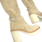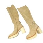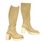 NEW Free People Jasper Over The Knee Tall Boots Camel Size 7.5 A chunky crepe-rubber sole and block heel create a very '70s silhouette for this buckled over-the-knee boot crafted from supple suede. Approximately 3.5” heel, 18.5” shaft; 10 1/4" calf circumference. Made in Spain. New without box Size 7.5 tags: boho, western, fall, winter, booties, tan, cream, beige