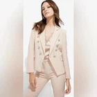 GENERATION LOVE Delilah Crepe blazer in Latte (Cream) Size XS Decorative Gold Buttons New w/ out tags The inside under the tag has a little mark from the store sticker Retail $385 Peak lapels Double-breasted button closures Bracelet-length sleeves, four-button cuffs Flap waist pockets Lined 95% polyester/5% elastane; lining: 95% polyester/5% elastane Armpit to armpit: 16.5" Back Length: 21" Front Length: 23" Tags: Moto, Generation Love, Revolve, Barbie, Preppy, Hot girl, Summer, Resort, soho, Hamptons, Cali, travel, Biker, Office, Work, Fun, Date night, Vacation, Business, Casual, Party, Features: • Blazer Size: Womens XS Condition: New Without Tags