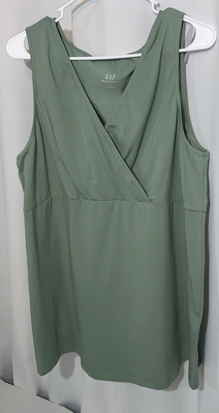 The NEW Gap Maternity Women’s XXL Sleeveless Kahki Green Tank Top is a stylish and versatile piece perfect for various occasions. Made from a comfortable blend of spandex, rayon, and cotton, this top features a flattering V-neckline and a pullover closure for easy wear. The solid green color and sleeveless design make it suitable for both casual and party settings during the summer, fall, and spring seasons. With its regular fit and size specifically tailored for maternity, this tank top from Gap is a great addition to any woman's wardrobe.