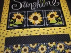 This exquisite quilt is a perfect addition to your home decor, featuring a vibrant and eye-catching design. It is made using quality fabrics and patchwork technique, ensuring durability and longevity. The quilt measures 43 x 62 inches and is handcrafted with love in the United States. The colorful pattern of this handmade creation is sure to brighten up any room. Its unique and novel design makes it a great addition to any child or grandchilds room great for twins. Whether you're snuggling up on the couch or using it as a throw blanket, this quilt is both practical and beautiful. Bring some timeless treasure to your home with this You Are My Sunshine quilt.
