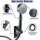 NEW High Pressure Showerhead Handheld Shower Head Multi Spray Modes with ON/OFF NEW High Pressure Showerhead Handheld Shower Head Multi Spray Modes with ON/OFF 100% Brand New & Excellent quality Free & fast shipping, with tracking number provided Feature: * Large Water Output: Strong pressurization of the Shower Head, large water output, shower can be more comprehensive coverage of the body, rinsing effect is better. * Five Modes: The Shower Head has 5 water dispensing modes that can be adjusted, namely: pulse mode, misting mode, surge mode, shower mode, soft mode, you can choose the water dispensing mode as you like to enjoy the fun of showering. * Anti-Rust and Anti-Corrosion: The Shower Head is made of high quality ABS, which is treated with baking paint process, anti-rust and anti-corrosion, drop-resistant and durable, high temperature resistant. * Silicone Water Spout Hole: The Shower Head adopts silicone water spout hole, which provides smooth water discharge, prevents clogging, and is easy to decontaminate, providing convenience for your life. * Universal 4-point Interface: The Shower Head adopts a 4-point interface, which is highly versatile and there is no need to worry about interface mismatch. Specifications: Material: ABS Color: Black/Sliver Shower Head Size: 9.5x3.54inch Tube Length: 1.5m/59in Package Includes: Shower Head+Hose+Brakcet 1 x Handheld Shower head 1 x Angle-adjustable Bracket 1 x 5ft Stainless Steel Hose Shower Head Only 1 x Handheld Shower head Feature: * Three Modes: The handheld shower head is different from ordinary shower heads, with three modes of rain, mix and spray, and has a head massage function to provide you with a different shower experience. * High-quality Materials: The shower head is made of high-quality ABS material, which is safe and environmentally friendly, wear-resistant and anti-fall. The exterior is made of multi-layer baking paint, rust-proof and corrosion-resistant, and is stronger than ordinary shower heads. * Ergonomic design: The shower head is ergonomically designed and fits your palm perfectly, making it more suitable for child care, elderly care, pet care, bathing and cleaning applications. * Easy to Use: Detachable shower head, just turn the button to switch between them, perfect for personal showers, children and pets, meets multiple needs and is convenient to use. * Upgraded shower head: The upgraded filtered shower head can soften hard water, equipped with filter element, prevent dry skin and hair damage, and accurately remove various impurities and pollutants. Specification: Color: gray Material: ABS Function: 3 Modes Interface type: International 4-point universal interface Applicable scene: bathroom Product size: 25*6*7.5cm/9.8*2.36*2.95inch Package includes: 1 x Shower Head ( Contains a cotton filter ) 1 x Packing Box Features: * Dual Turbo Booster Shower: The Shower Head is designed with dual turbines, the water flow can be synergized by the two turbines when passing through the shower to ensure the continuity and stability of the water flow. * Soft and Delicate Water: The Shower Head adopts advanced water spray design, the water flow can become softer and more delicate when passing through the shower head, which makes the shower process more comfortable. * Fine Cluster Holes: The fine holes in the Shower Head's spout allow the water flow to cover the surface of the body more evenly, making for a more comprehensive shower. * Removable Cleaning: The Shower Head can be disassembled and cleaned to remove the impurities and dirt inside, prolonging the service life. * Drop Resistant and Durable: The Shower Head is made of high-quality ABS material with good toughness and impact resistance, able to resist the wear and tear and corrosion encountered in daily use, not easy to deform. Specifications: Material: ABS Working Temperature: 0-90 Process: Electroplating Size: 26x9cm/10.24x3.54in Package include: 1 x Handheld Shower Head Payment Shipment Return Feedback Contact us Payment * We Accept Payment via PAYPAL ONLY . * Payment Must be Made within 4 Days of Auction Closing. * Non-Payment may Result in a UPI (Unpaid Item) being Put on Your Account. eBay will Automatically Close Your Account if You Accumulate 4 UPI's total. * Please List Your Special Requests ( Color, Size, Packages, etc. ) in the PAYPAL NOTES SECTION when you make payment. Shipment * Shipping will be handled in 24 business hours after payment got. Ship to PayPal Address only , please confirm it before paying. * Please leave your phone number in the address in case there is an address problem. Return * Returns and Exchange accepted within 60 Days. * Refund will be given as Money Back. * Free Return shipping. * Before you return the defective item,please email us for the RMA, and we will reply you in 24 hours in working days. If you do not get reply please check if your mail box has refused our reply or not, then send to us again, thanks! Feedback If you are satisfied with the transaction please remember to leave us a positive feedback (5-Star) will be much appreciated. Please DO remember to contact us before leaving the neutral (3 stars) , negative feedback (1-2 stars) or opening a case/dispute if any problem caused by the item . Normally your email would get replied within 24 hours on working day and your issue would be followed up carefully until we've reached a consensus! We will try our best to solve the problem and leave you a happy shopping mood here. Thank you! We are not only selling good items, but also selling with excellent after-sale service and a strong sense of responsibility. We will always try our best to find you a satisfactory solution if any problem takes place! Contact us Email muchbuy-outlet at Paypal registered email or ebay message.