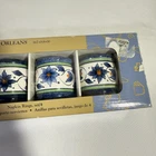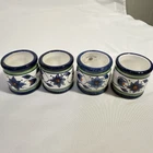 Add a touch of elegance to your dining table with this set of four napkin rings from Pfaltzgraff's Orleans collection. These round ceramic rings feature a beautiful floral pattern in shades of blue, making them perfect for all occasions. Measuring 2 inches in diameter and height, they are the perfect size to hold your napkins in place while adding a stylish touch to your table setting. Crafted in China, Thailand, and the USA, these original napkin holders are not only functional but also durable. They come in a set of four and are perfect for collectors or those who appreciate fine tableware. Add a touch of sophistication to your dining experience with these Pfaltzgraff Orleans napkin rings.