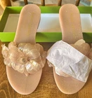 New in Box Kate Spade Jaylee Glitter Jelly Floral Rhinestone Thong Sandals Size 7B Gold/Silver