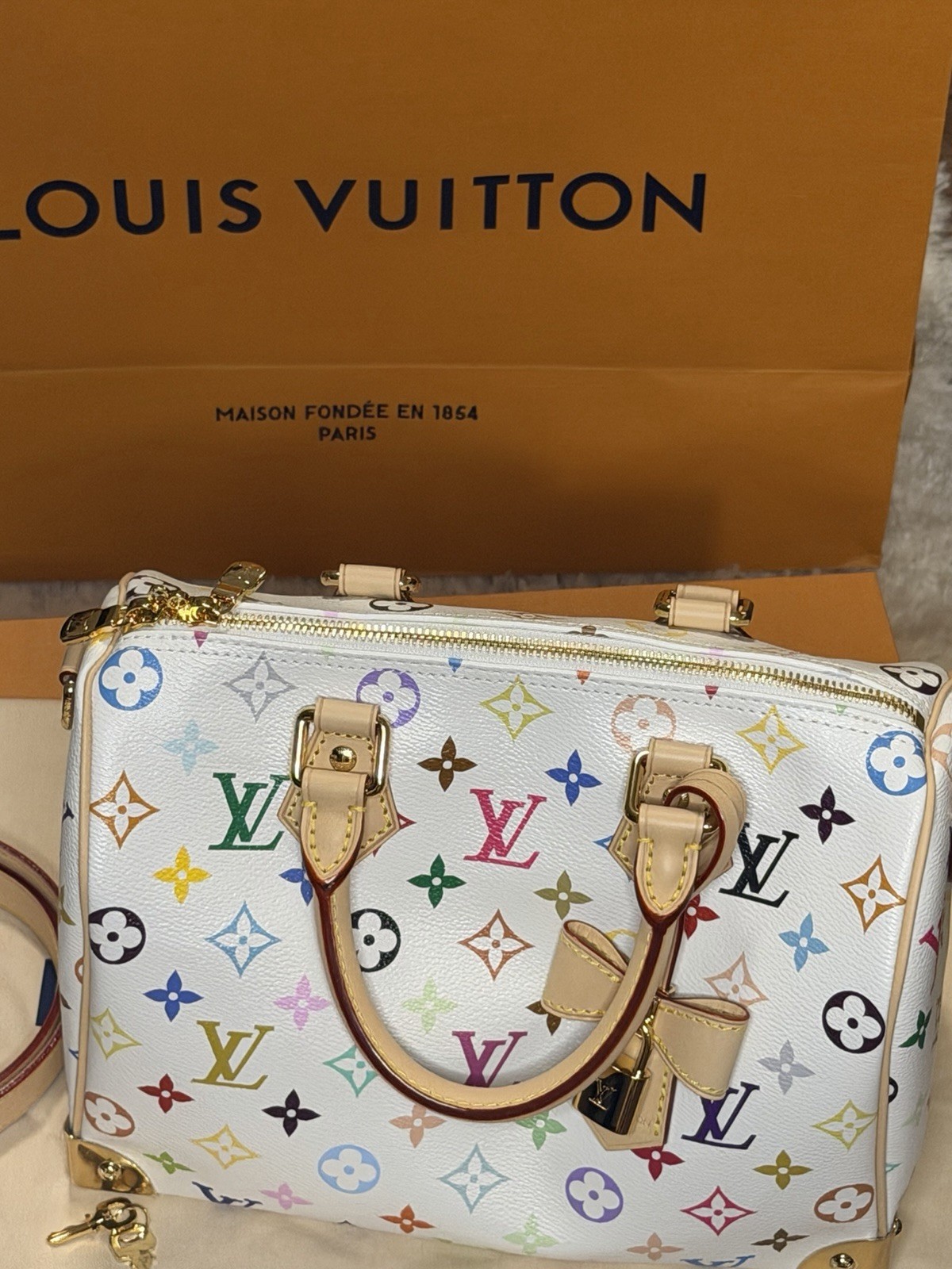 Louis Vuitton x Takashi Murakami Speedy 25 – White Multicolor – Brand New • Brand new, never used • Iconic White Multicolor Murakami collaboration • Speedy 25 — highly sought-after size • Pristine condition, clean interior • Stored properly in a smoke-free, pet-free environment Full set includes: • Original Louis Vuitton receipt • Box and dust bag • Lock and key • Strap / bandoulière