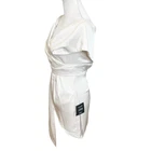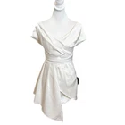 Lulus New Always Celebrating Ivory Satin Off-the-Shoulder Mini Dress Size XS off-the-shoulder neckline (with hidden no-slip strips), a surplice bodice, and short sleeves. Gathered high waist, mini skirt with an asymmetrical overlapping panel. Hidden back zipper/clasp. New with tags, no flaws noted.