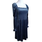 New with tags. Size Medium (also have a size large). The color is beautiful! Also, SO soft. Square neck, smocked top, gathered skirt and amazing puff sleeves. Has stretch. Brand is Macy's Black Tape This gorgeous smocked blue velvet dress is so versatile! The perfect party dress, flirty coquette dress, romantic renaissance fair dress, cute milk maid peasant dress or just a fun dress for school or event. Keywords: velvetdress peasant stretchydress bluedress medieval middleages renaissancedress renaissancefair y2kstyle Retrodress Rockabilly Housewife Girlystyle eventdress partydress feminine regency milkmaid fairydress vintagestyle medievaloutfits medievalfashion maiden cottagecoredress gathers whimsy romanticdress Color/texture may vary due to lighting/devices Items may show wrinkling from packing/transit Packaging/tags may vary and/or have imperfections not affecting the item ID:QT/14.3