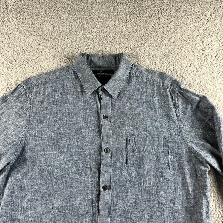NEW Marc Anthony Shirt Mens Medium Blue Chambray Linen Blend Slim Fit Button Up Condition: New without tag. Very good condition. Please see all photos for condition and measurements. Please let us know if you have any questions. Thanks for shopping with us.