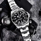 Crafted for the modern gentleman, the Pagani Design 43MM Diver Watch Automatic Mechanical is a seamless blend of functionality and elegance. With its polished silver case and bracelet strap, both boasting a high-quality sapphire glass, this timepiece is a testament to sophisticated design. The watch features a striking colourful dials adorned with the iconic Pagani logo and includes a date indicator, luminous dial, hands, and indexes for enhanced visibility in low light. Not just a pretty face, the PD-1639 model is powered by a mechanical (automatic) movement with 24 jewels, ensuring precision and reliability. It boasts a robust water resistance of up to 100 metres, making it suitable for diving and water sports. The hidden fold clasp ensures a secure fit for wrist sizes up to 21.1-22 cm, while the dual time bezel allows for effortless timekeeping in multiple time zones. Complete with original box, manual, and papers, this watch is a standout accessory for any collection.