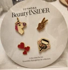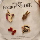 Add some sparkle to your collection with this NEW SEPHORA Beauty Insider 4 Piece Collectible Pin Set. Each pin features a unique design, including unicorns, hearts, and make-up inspired themes. Show off your love for Sephora and the beauty industry with these stylish pins. The set is an original and has not been modified in any way. Get your hands on this must-have accessory for any beauty collector.