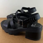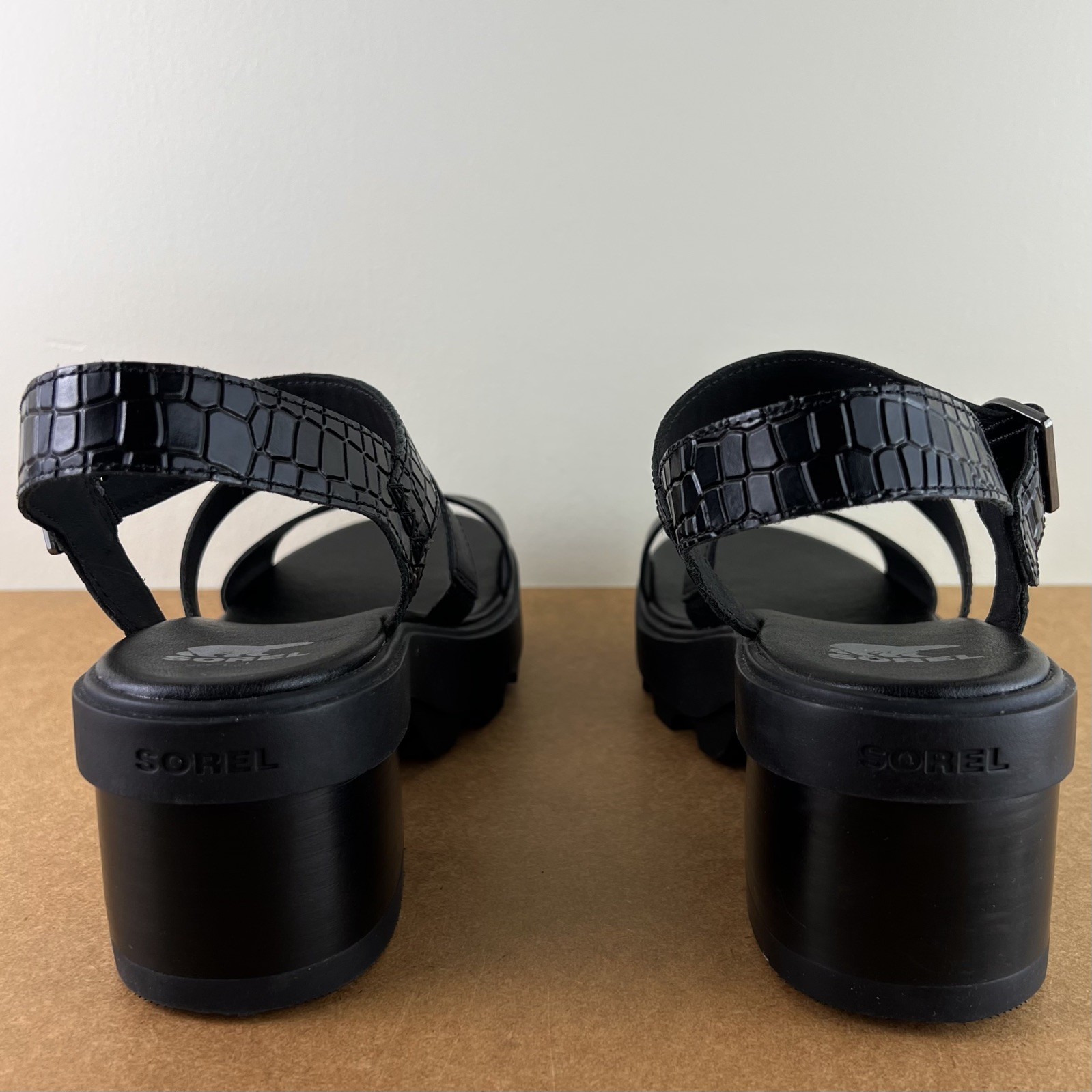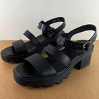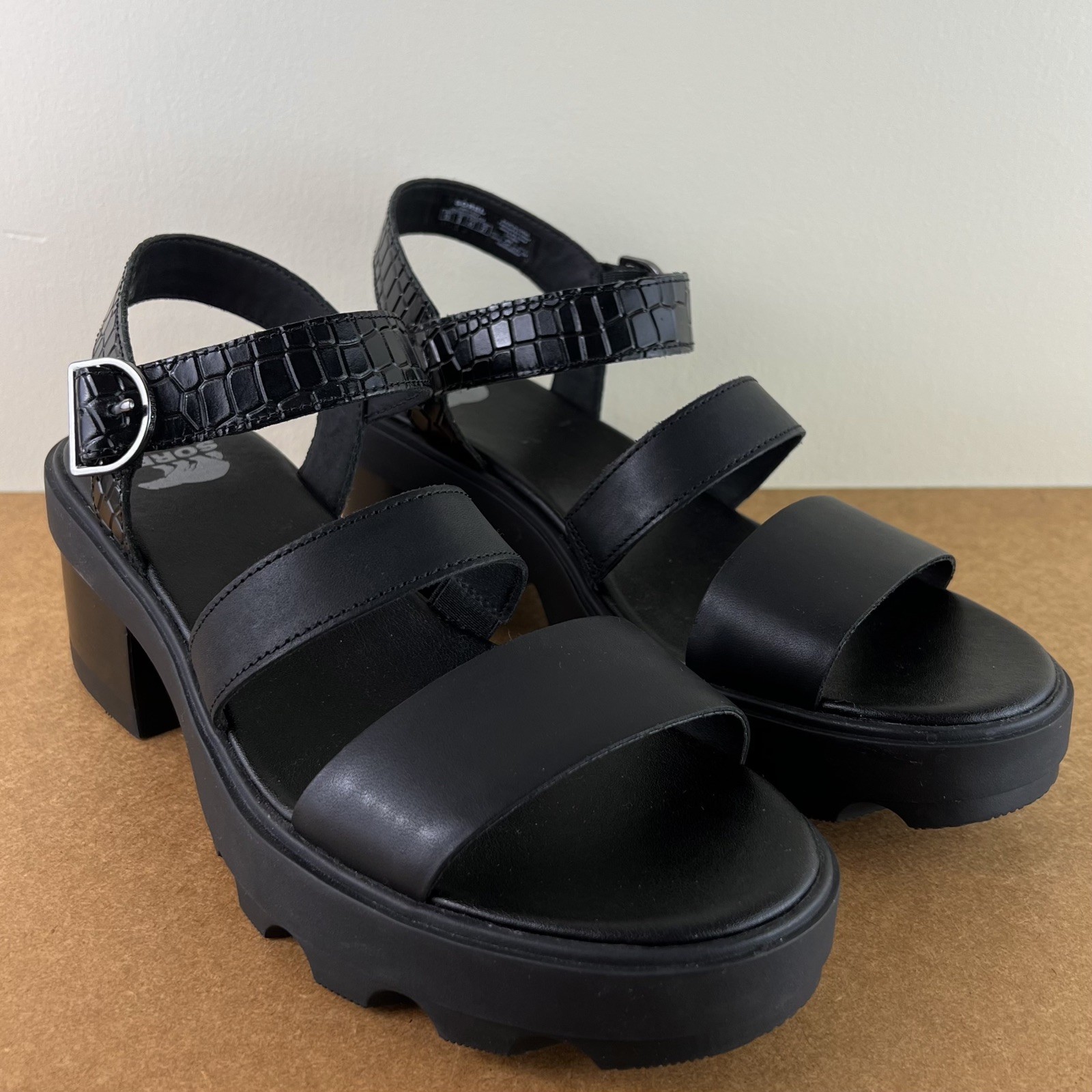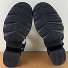 NEW SOREL BLACK LEATHER SANDALS 10 NEW WITHOUT BOX *Store try-on pair; has a couple scuffs/scratches* SIZE- 10 DETAIL: - Open round toe - Double strap vamp - Ankle strap with buckle close - Lug sole COLOR- black MATERIAL- leather upper
