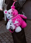 SPRAYGROUND WHITE & PINK DESIGN STORM MONEY BEAR BACKPACK NEW WITH TAGS LIMITED EDITION **SOLD OUT** PRODUCT DETAILS- Money Bear returns in this Limited Edition Teddy Bear Backpack Exterior- Dimensions: 25" x 7" x 12" Zippered pocket on belly Zippered pockets on each arm Large zippered pocket on back panel Adjustable Straps for custom sizing Fabric- Durable Polyester Velour water-resistant fabric