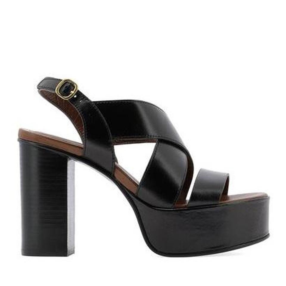 See By Chloe leather platform sandals. New, never worn. Women's EU size 39 (US size 8.5). Slingback heel strap closure with gold tone buckle and cushioned footbed. Soles are in pristine condition (see photo).