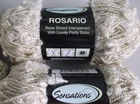 5 Skeins Sensations Rosario Base Strand Interspersed with Lovely Fluffy Slubs yarn, Rosario Beige, lot #54. Weight is "4-Worsted". Each skein is 131 yards, for a total of 524 yards. New and first quality! From a smoke-free environment. Thanks for looking - please visit my eBay store for more bargains and combined shipping discounts!