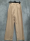 NEW Stradivarius Women's Linen Look Wide Leg Trousers In Natural Beige Size UK 8. Part elastic waistband. Pockets.