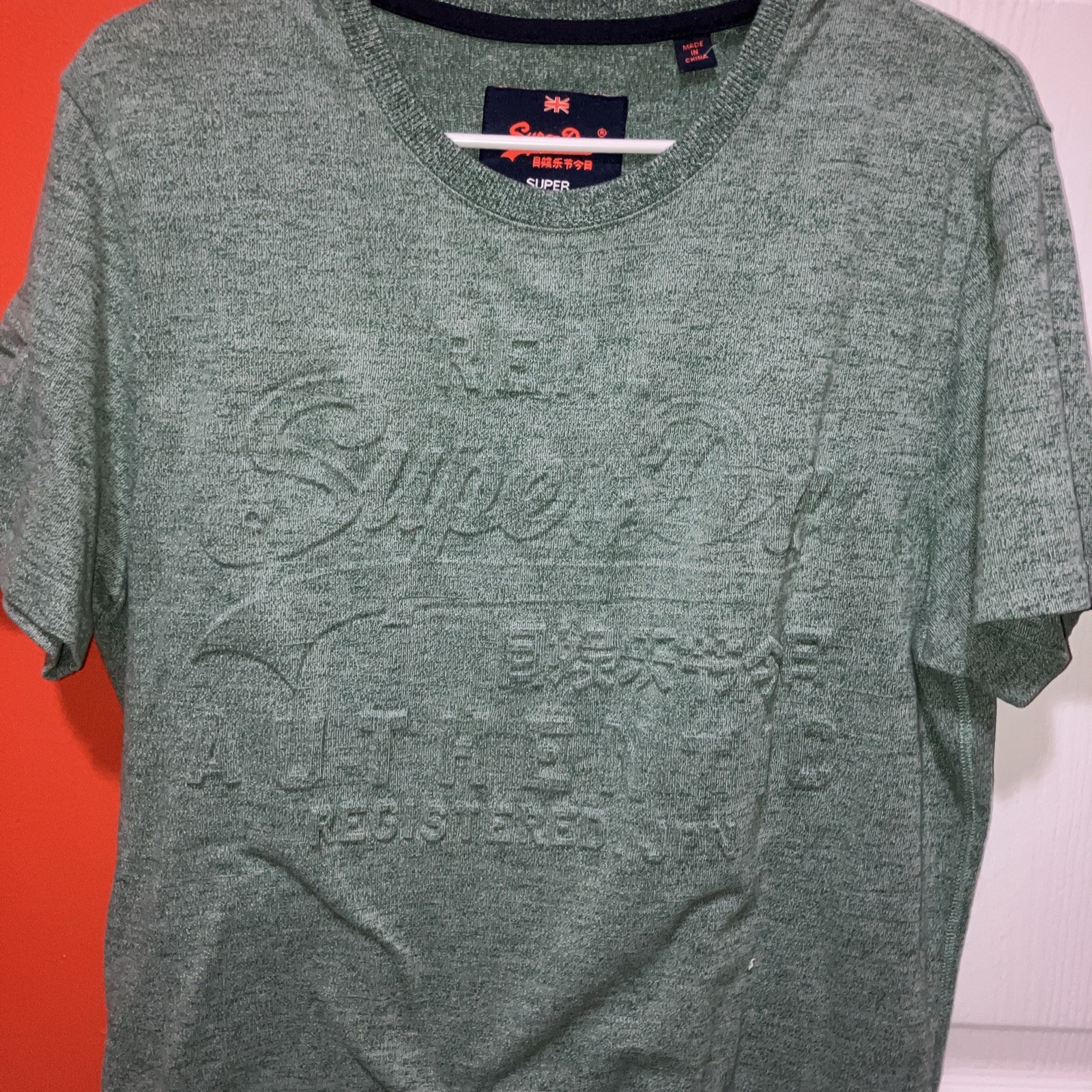 Beautiful Cloverfield Green Real Super Dry Authentic embossed front t shirt. Size XL, purchased for this Christmas but not his style. Cool shirt
