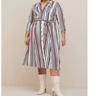 Closure: Button Season: Fall, Spring, Summer, Winter Department: Women Features: Collared Brand: Torrid Pattern: Striped Style: A-Line, Fit & Flare, Shirt Dress Sleeve Length: 3/4 Sleeve Size Type: Plus Color: Purple Dress Length: Midi Theme: Classic, Holiday, Colorful, Preppy, Retro Neckline: V-Neck Size: 2XL Occasion: Business, Casual, Party/Cocktail, Travel, Workwear