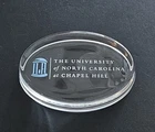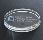 NEW NIB new in box - oval glass UNC-CH University of North Carolina Chapel Hill paperweight - etched on bottom, also Carolina Blue spring. Please see pictures. 4" across 2.75" deep 7/8" tall (off surface of table) I will combine shipping, where advantageous to us both, for auction items closing within just a few days of each other IF you let me know at the time of your first win/purchase. Then allow me to combine billing or adjust invoicing prices when you're done. Depending on what you win/buy, combining shipments is not always feasible or even cheaper....but, I will check if you ask. Ebay doesn’t always allow the flexibility to do this with Fixed Price (Buy It Now)listings….so….if you are planning to purchase multiple BIN listings, please communicate with me before buying. We may be able to arrange for reduced shipping costs once the multiple purchases are completed. No returns. Please ask any questions beforebidding.