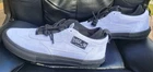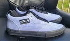 This is a pair of Vans sneakers in the Sk8 Hi model, with a low top shoe shaft style and a striped pattern in blue color. They are men's athletic shoes in size 11, designed for skateboarding performance. The shoes are part of the Era product line and are inspired by various themes like art, rock, American culture, and skating. The design incorporates elements from Palace, Wtaps, and retro 80s and 90s styles, making them a colorful and stylish choice for fans of skate, punk, and hip hop culture. Pictures are of actual shoes. Brand new never worn and no defects. Don't have original box but shoes will be shipped in a jordan shoe box. Feel free to contact me with any questions.