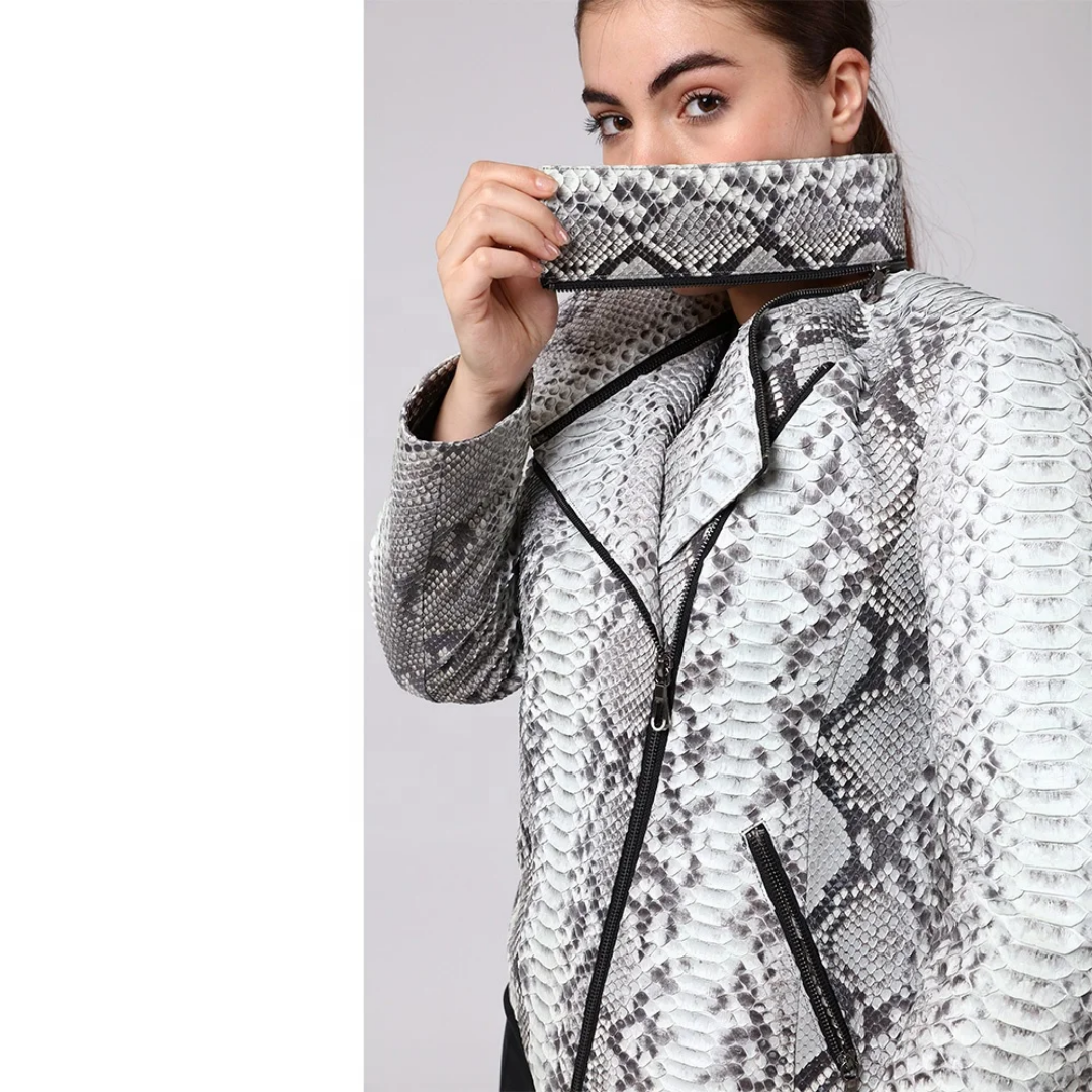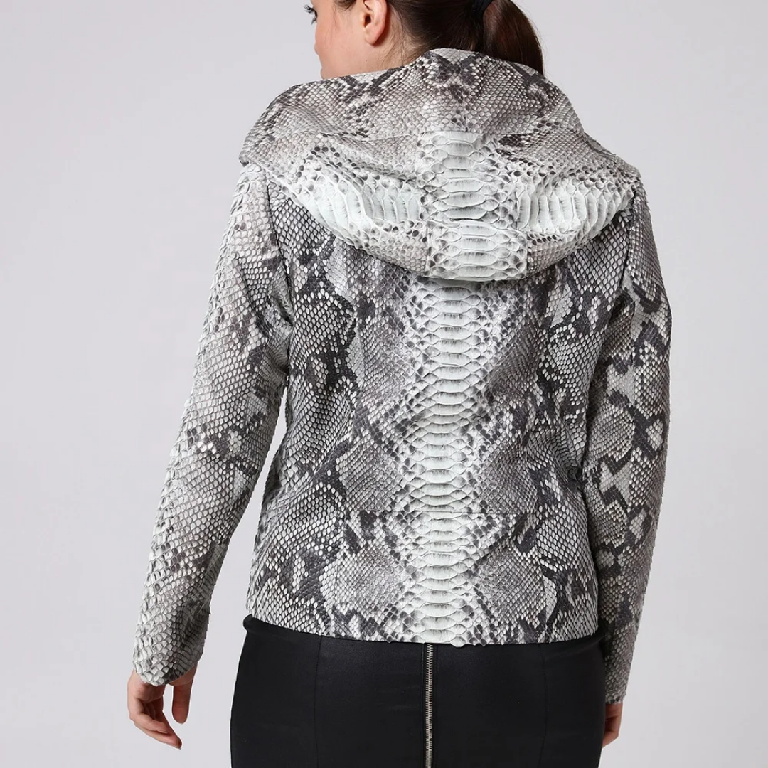 Comes as Pictured. Crafted for the modern woman, this hooded python embossed skin leather jacket blends style with function. Its striking animal print pattern paired with a biker-inspired design offers a bold fashion statement. The jacket features a comfortable mid-length cut, long sleeves, and a robust zip closure, ensuring both warmth and ease of movement. Tailored to fit sizes ranging from S to 3XL, this piece accommodates a variety of body types with its regular fit. The polyester lining and insulation provide insulation across fall, spring, and winter, while the collared neckline adds a touch of sophistication. Suitable for a multitude of occasions, from casual outings to more formal events, this jacket is a versatile addition to any wardrobe. Shipping Terms: Yes we Ship Worldwide. Note: Order will be Dispatch within 3 Business Days from Date of Purchase.