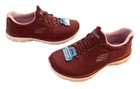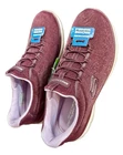The Skechers Summits Gleaming Dream sneakers in women’s size 10 feature a low top silhouette with a slip-on closure for easy wear. These lightweight, machine washable athletic sneakers are a shiny solid plum color with lavender fabric lining and synthetic upper material. They offer comfort with memory foam insoles, making them ideal for activities like gym training, walking, cross-training, and running.
