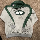 This is a rare vintage Reebok Men's XL sweatshirt featuring the New York Jets NFL team. The sweatshirt is multi-colored and designed with the team's logo and branding. It is officially licensed NFL apparel from Reebok's Team Apparel line. This sweatshirt is perfect for Jets fans looking to show their support during the regular NFL season.