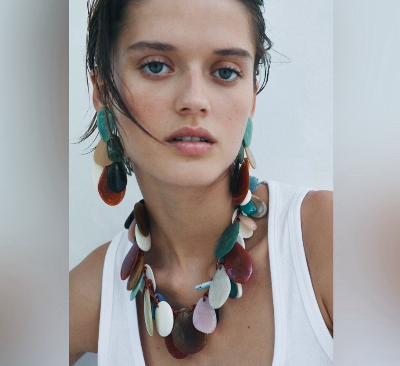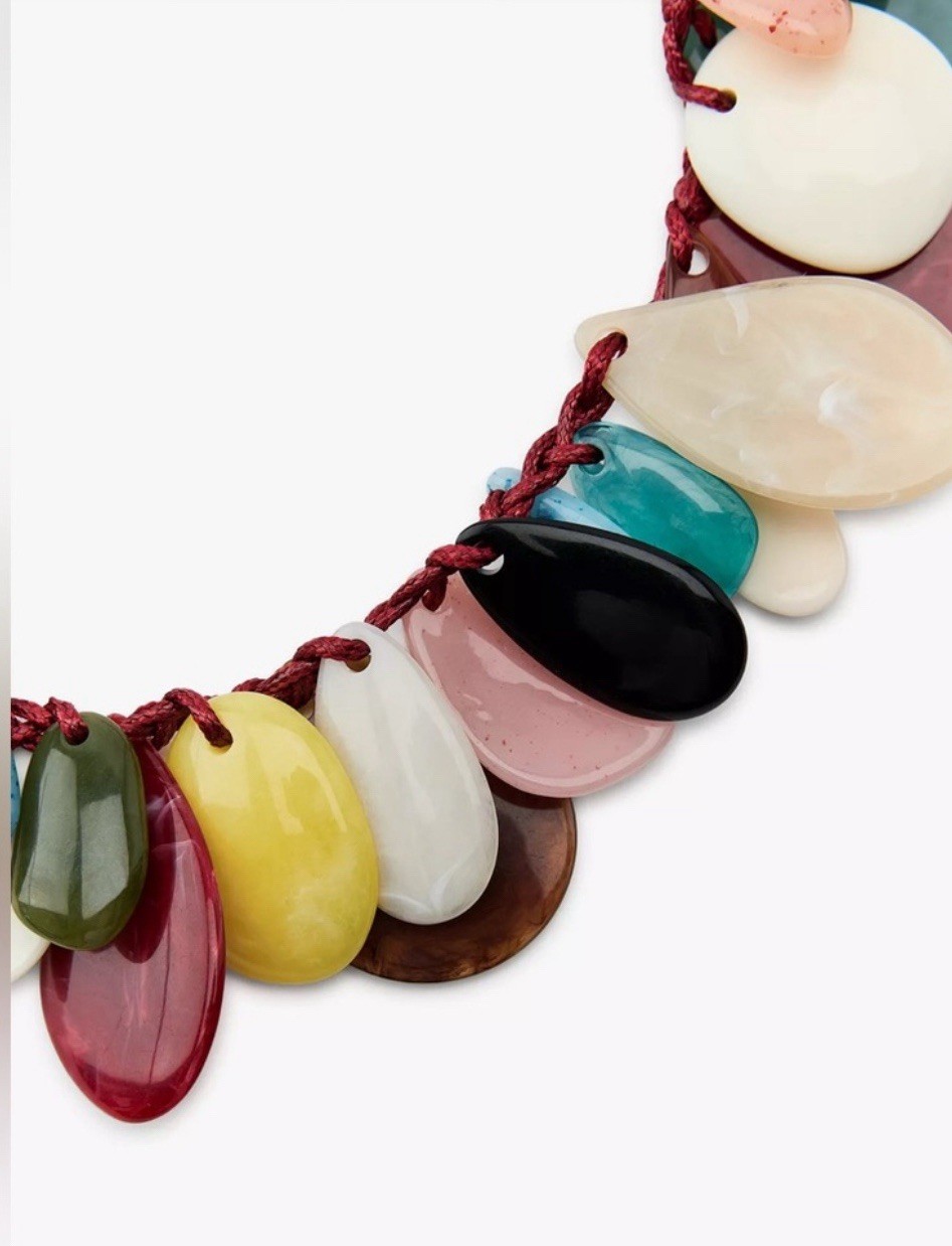 The NEW Zara Resin Piece Corded Necklace 4736/088/330 is a statement piece made of resin, featuring a unique corded design. This necklace from Zara is a stylish addition to any jewelry collection, perfect for adding a touch of sophistication to any outfit. The resin material adds a modern and trendy feel to the overall look, making it a versatile and eye-catching accessory.
