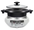 Enjoy versatile cooking with the Zojirushi Gourmet d'Expert electric skillet. Perfect for use with Yin Yang hot pot, it features a deep pan with a divider and a dual surface griddle pan for grilling meats and vegetables. Both pans boast a titanium and ceramic-enhanced nonstick coating for easy cleaning. From Zojirushi. Includes electric skillet, deep pan, griddle pan, glass lid, power cord, and instruction manual Model number: EP-PFC20HA 1,300W heating system Auto shut-off feature Titanium and ceramic-enhanced nonstick coating Hand wash only Measures 16.875"W x 13.75"D x 9"H ETL listed Imported