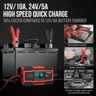 About this item 【10-AMP QUICK CHARGER】12V 10-Amp and 24V 5-Amp 7-stage quick battery charger and maintainer, charging speed is much faster than 8-Amp or 5-Amp automatic chargers. Charge or repair all 12-volt and 24volt lead-acid automotive, marine and deep-cycle batteries including AGM, GEL, SLA, Flooded in cars, trucks, SUVs, motorcycles, lawn mowers, boats marine, etc. NEW REPLACEMENT AVAILABLE FOR ANY QUALITY ISSUE WITHIN 2 YEARS. 【SPRING/WINTER BATTERY TRICKLE CHARGER】Battery trickle charger and maintainer with multiple protections ensures the safety of charging perfectly for maintaining batteries over months in this winter or holidays. Avoid battery failure in advance. No worries! Perfect household tool and present for daily use! Smart control, temp compensation in hot or cold climates, reverse protection, cooling system, overcurrent, fireproof material, overcharge, short circuit. 【HIGH-EFFICIENCY PULSE REPAIR】Automatically detects battery sulfation and acid stratification, take newest pulse repair function to restore lost battery performance for stronger engine starts and extended battery life. Note: can not activate or charging totally dead batteries. 【VISUALIZED CHARGING】 Large LCD display the charging and battery status; charge voltage and current, inside temperature, charge percentage, summer mode, winter mode, etc. More convenient to use. 【PLUG AND PLAY】 no complicated steps, just plug and charge, stay at home and charge your batteries on your own. All-in-one battery solution as battery charger, battery maintainer, trickle charger, plus battery desulfator. The must-have tool for your garage 【FLOAT/TRICKLE CHARGER】 Switch to float/trickle charge mode to maintain batteries over the winter: 1, Choosing corresponding modes(STD/AGM,GEL/WET/MOTORCYCLE) to fully charge the battery, screen display "FUL" 2, Then switch to "MOTORCYCLE" mode will auto-enter trickle charging mode to keep batteries stay charged for a long time. Shipping We offer FREE shipping on all orders! We ship within Three business days of payment, usually sooner. We use a selection of shipping services such as UPS, FedEx, USPS etc. We only ship to the lower 48 states, no APO/FPO addresses or PO Boxes allowed. Local pickups and combined shipping options are not provided at this time. Return You can return a product for up to 30 days from the date you purchased it. Any product you return must be in the same condition you received it and in the original packaging. Please keep the receipt. Payment We accept payment by any of the following methods: PayPal Please pay as soon as possible after winning an auction, as that will allow us to post your item to you sooner! Feedback Customer satisfaction is very important to us. If you have any problem with your order, please contact us and we will do our best to make you satisfied. Contact Us If you have any queries, please contact us via ebay. We usually respond within 24 hours on weekdays. Please visit our eBay store to check out other items for sale! Thank you for shopping at our store. Disclaimer We are working with different suppliers in USA to deliver the item to your doorstep. If you have any issues regarding the item, Feel free to ask.