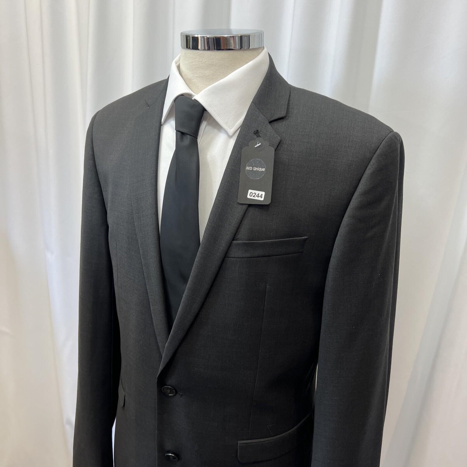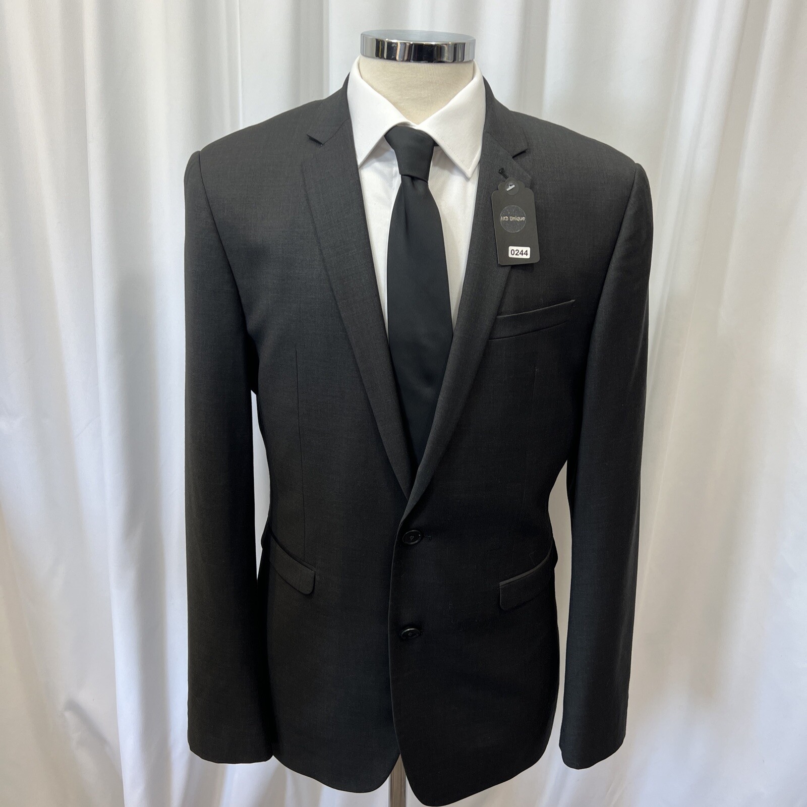 NEXT TAILORING Dark Grey Wool Blend Slim Fit 2 Piece Suit Jacket Chest: 40L" Inside pockets: 4 Front pockets: 2 Breast pocket: 1 Buttons to each cuff: 4 Buttons to front: 2 Back vents: 2 Shoulder to cuff: 27" Armpit to cuff: 18.5" Armpit to armpit when laid flat: 21" Shoulder to shoulder: 18" Collar to hem: 30" Trousers Waist: 34" Zip Front pockets: 3 Back pocket: 2 1 button & 2 hook fastening Inside leg: 33" (can drop 1.25") Width of hem at bottom of trousers: 8" AKD0008-244 Please note: Colours may slightly vary due to lighting conditions Each item undergoes meticulous hand-measured scrutiny; sizes may not align precisely with the label Review measurements and review the item description/photos before placing your bid Unfortunately, we cannot provide additional photos once items are listed The shirt and tie are not included unless explicitly stated in the listing Questions and concerns: Reach out to us through the ebay messaging system - we aim to respond within a maximum of 12 hours Ironing guidelines: Garments may arrive with minor creases Refer to the care label and use continuous steam when ironing We recommend dry cleaning for best results and peace of mind Your feedback matters: Please leave us a 5-star rating if satisfied For issues or concerns, please contact us before leaving feedback Returns: We offer a generous 30-day return period, via the ebay returns centre Please return items in their original packaging with all tags attached Buyers cover return shipping costs unless items are faulty or inaccurately listed