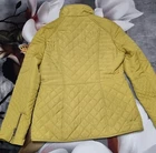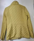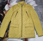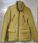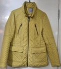 NEXT Womens Yellow Solid Windcheater Outerwear Quilted Raincoat Jacket - UK 10 Elevate your style with this stunning yellow quilted jacket from NEXT. Made from high-quality polyester, this mid-length jacket features long sleeves and a full zip closure with accents that add a pop of sophistication. Perfect for any occasion, this jacket comes in size 10 and has a regular fit. The jacket is fully lined with polyester and has inner pockets that provide extra storage. It is designed to be breathable and insulated, making it suitable for all seasons. The collarless design adds a touch of elegance, while the limited edition style makes it a must-have for any fashion-forward woman. Ideal for travel, party/cocktail, casual, formal, workwear or business, this jacket is a versatile addition to any wardrobe.