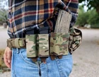 Nexus Rifle Magazine Pouch – the ultimate magazine storage solution designed to meet the demands of the modern warfighter, prepared civilian, and freedom fighter. Crafted with precision and innovation, this pouch is a game-changer for anyone serious about their equipment. Built from double-layered Squadron Cordura, and laser cut to perfection, this mag pouch is built to last and stand up to hard field use. We utilize a formed piece of kydex thermoplastic in each mag pouch to give reliable retention, and a smooth draw ever time, along with a quick & easy insertion of the magazine. INCLUDED WITH ORDER: Rifle Mag Pouch. Velcro one-wrap (For mounting onto belts or other molle gear) Molle/Belt mounted Utility Hook (ONLY If ordered). (These utility hooks are also available on our eBay store) [If you are looking for our matching single pistol or double pistol magazine pouches, please visit our website or eBay store!!] FEATURES: Laser-Cut Precision: Expertly crafted with laser-cut Squadron laminate material for a futuristic look and exceptional durability. This advanced construction method has been gaining popularity in recent years, and for good reason. The NEXUS is a magazine pouch that looks as cutting-edge as it performs. Versatile MOLLE Mounting: Half-inch spaced MOLLE on the rear of the pouch allows for easy belt mounting. Compatible with Malice Clips and Velcro One-Wrap for Molle mounting. (We currently included with One-wrap as we feel it is the better of the two). Fully compatible for with all belts or gear up to 3″ in width. Any belt below 3" works PERFECT. If you’re looking for a new belt rig, we highly recommend our new TITAN BELT . Kydex Insert: Compatible with nearly all standard AR/M4 .223/5.56 magazines. This insert offers exceptional durability and provides for a smooth draw and perfect retention every time. The Nexus Mag pouch also allows for adjustable retention; the kydex insert can easily be heated up with heat gun/hair dryer to bend the kydex for more/less retention depending on your particular needs. Utility Hooks: Easily attach our Belt Utility Hooks on the exterior laser-cut grid for a reliable & quick mounting of keys, gloves, chem lights, carabiners, etc. Tourniquet Compatible: For those who demand even more functionality, our Nexus Pistol pouch is spacious enough to accommodate the incredible ETQ from Snake Staff Systems , we’ve been running these Tourniquet’s for months and they are incredible. We have no affiliation with Snake Staff, we just love their product. At the end of the day: BE PREPARED TO SAVE A LIFE, TRAIN MEDICAL. Lifetime Warranty: We take pride in our products, and only build excellence. No matter how it broke, or who broke it, return it to us for a rebuild or replacement. Guaranteed to kick some major butt until the second coming of Jesus. Looking for our Nexus Pistol Pouch? Click the link HERE