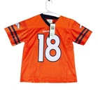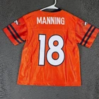 Official NFL Denver Broncos jersey featuring number 18 Manning. Orange with navy blue accents and team logo. Made from breathable mesh material with screen printed graphics. New with tags attached. Perfect for young football fans. Sport: Football Keywords: denver broncos, nfl, manning, 18, football jersey, youth jersey, team apparel, orange jersey, broncos jersey, athletic wear all items have been cleaned and disinfected we stand behind all we sell so please contact us if you have an issue with any order