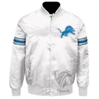 NFL Detroit lions White Satin Varsity Jacket full-snap Embroidery logos NFL Classic vintage style varsity jacket Elegant look Embroidery logos Outer Premium Satin Fabric Inside 100g quilting & satin blended lining Front matched snap 2 external pockets & 1 internal mobile pocket Premium quality polyester rib collar , cuff & bottom Custom Orders are very welcome with respect to time and cost factors. About Sizing: Please make sure check Size chart carefully before ordering if still you have any confusion Please message us on eBay we we will suggest you size according to your body measurements. Return Policy: You are fully protected with eBay 30 days return policy shop with confidence.