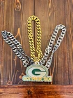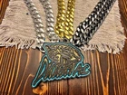 Tired of those cheap foam medallions always ripping and tearing? These solid 3D printed swag chains will last for seasons! Is your friend or family member a huge football Fan? Whether a birthday, Christmas or simply celebrating the start of the new season, our 3D printed Medallions make the perfect gift! These PLA and Epoxy logos can also serve as the perfect addition to any fan cave. Each medallion is approximately 6x6 inches and weighs less than 1lb. Each one is hand-made in the USA and 3D printed, sanded, coated, primed, and painted by hand. The final step is the epoxy pour which leaves a custom one-of-a-kind granite effect. Each medallion has a unique finish and look so final results in the granite effect will vary. Do you want a custom swag chain with your own logo and text? Message me for details. At Fins Place Art we only use Artresin Epoxy which has passed the strict California Prop 65 testing. However, we will still include the warning for shipments going to California.