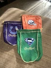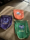 3 colts CROWN ROYAL BAGS. Condition is Used. Shipped with USPS First Class Package. Item is unused condition. Just removed the bottle. Lots of pictures so take a good look. Quick shipping!! Check out my other goodies. These bags are homemade with NFL patches.