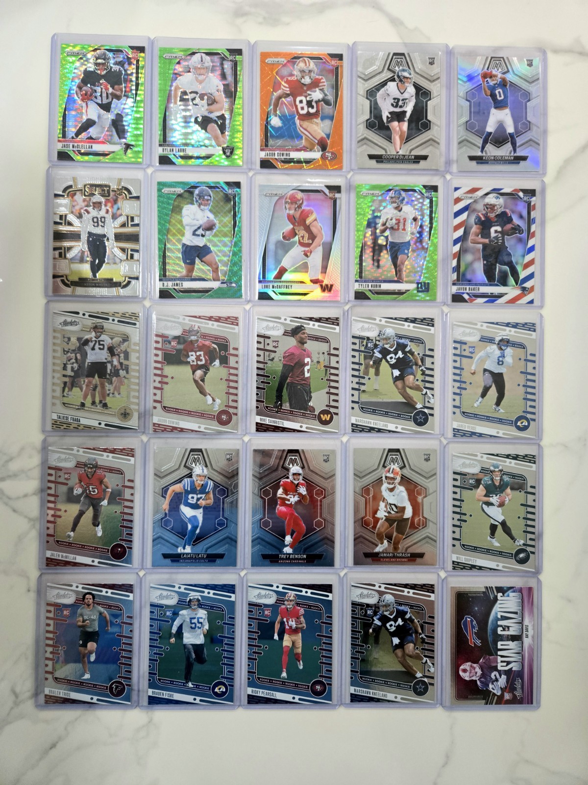 This NFL Rookie Trading Card Lot consists of 100 cards, all featuring rookie players from the National Football League (NFL). Each card is a valuable collectible for fans of football and sports trading cards. With a mix of promising rookies from different teams and players, this lot offers a diverse selection for collectors looking to add to their sports memorabilia collection. This product is a must-have for any football card enthusiast interested in owning a variety of NFL rookie cards.