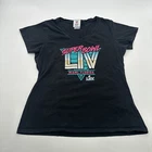 The NFL Team Apparel Miami Florida Super Bowl T-Shirt is a women's size medium shirt in black, designed for fans of the National Football League (NFL) team from Miami. This officially licensed shirt features Super Bowl branding, making it a great choice for fans looking to support their team during the championship season. The shirt is made in Honduras and is a stylish way for female fans to show their team spirit. *Check the images above for the flaws and measurements of the item.