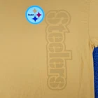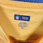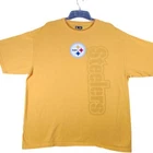 Official NFL Team Apparel Pittsburgh Steelers t-shirt in yellow/gold. Features team logo on chest and tonal 'Steelers' text graphic on side. Cotton construction. Good pre-owned condition with no major flaws or defects. Color: Yellow Department: Men Type: T-Shirt Fit: Regular Sleeve Length: Short Sleeve Character: Steelers Logo, NFL Mascot, Pittsburgh Steeler, Football Player, Team Mascot Pattern: Graphic Print Character Family: NFL Teams, Pittsburgh Steelers, Professional Football, NFL Official, Team Sports Keywords: steelers, pittsburgh, nfl, football, team apparel, sports, athletic, logo, graphic tee, yellow, gold, mens all items have been cleaned and disinfected we stand behind all we sell so please contact us if you have an issue with any order