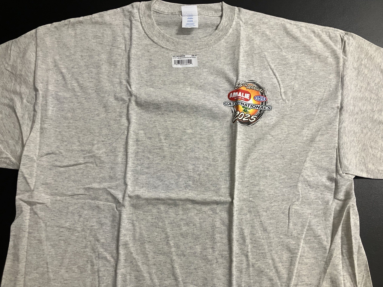 This is a brand new NHRA LICENSED AND TAGGED 2025 OFFICIAL GATOR NATIONALS Event T Shirt. The Size is 2X and the Color is OATMEAL The big design pictured above is on the back of the shirt. The front has the smaller matching left chest logo. THIS T SHIRT IS BRAND NEW AND IN PERFECT CONDITION.