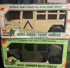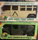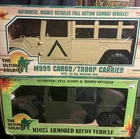This first description is going to be one that I have created myself…. THIS IS FOR TWO DIFFERENT SEPARATE ITEMS THAT YOU CAN PURCHASE INDIVIDUALLY OR TOGETHER AT A DISCOUNT. THE FIRSTS IS A M998 CARGO /TROOP CARRIER. THE SECOND IS A M1025 ARMORED RECONNAISSANCE VEHICLE BOTH ARMED WITH A 50 CALIBER MACHINE GUN ALSO KNOWN AS THE MA DEUCE. THESE ITEMS ARE ALL BRAND NEW AND IN THE BOX AND HAVE NEVER BEEN OPENED TO MY KNOWLEDGE. THEY HAVE BEEN THE WAY ON WHICH I RECEIVED THEM AND HAVE STAYED IN MY DISPLAY AREA FOR SEVERAL YEARS NOW. I ALSO HAVE MANY OTHER HUMVEES AND CARGO/TROOP CARRIER VEHICLES THAT ARE NOT BOXED. I AM WILLING TO SELL AS WELL AND HAVE A FEW HELICOPTERS TOO. YOU WOULD HAVE TO MESSAGE ME IN ORDER TO BE ABLE TO COME TO AN ARRANGEMENT ON THOSE, BUT I WILL RESPOND AND I’M SURE WE CAN WORK OUT A DEAL NEXT, WE WILL USE THE AI AND SEE HOW IT DOES COMPARED TO ME. I HOPE THAT I HAVE DONE THE DESCRIPTION A BETTER SERVICE THAN THEM BUT NONETHELESSHERE IT GOES… This is a limited edition 1:6 scale set of Humvee style vehicles from the 21st Century Ultimate Soldier franchise. The set includes a cargo/troop carrier and an armored reconnaissance vehicle, both in camo colors with various weapons such as a gun, M2 .50 Cal Machine Gun, and an assault rifle. The vehicles are made of mixed materials and plastic, and were manufactured in 1998. The set is boxed and oversized, making it a great addition to any military and adventure themed collection.