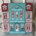Brand new in gift tin Exfoliating Body Scrub Cleansing Shower Gel Moisturizing Body Lotion Each is 8.45 Fl OZ “Cookie Dough” scented