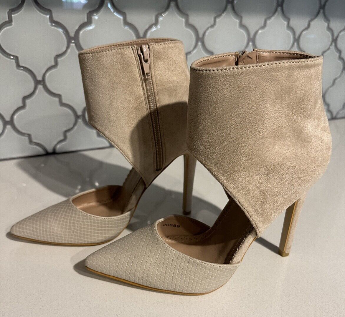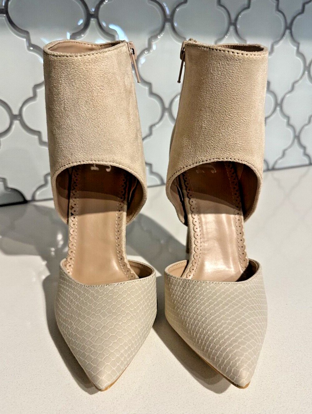 NEW JOURNEE Collection Womens Beige Snake Texture Zinia Dress Pumps 7 Medium Runs big, fits 7.5 shoe-foot-size. Medium Pointed toe, closed toe. 4+ inch stiletto heel Perfect for professional business work dress and casual. Great ankle support! Thanks for your interest! All sales final, no refunds. Thank you.