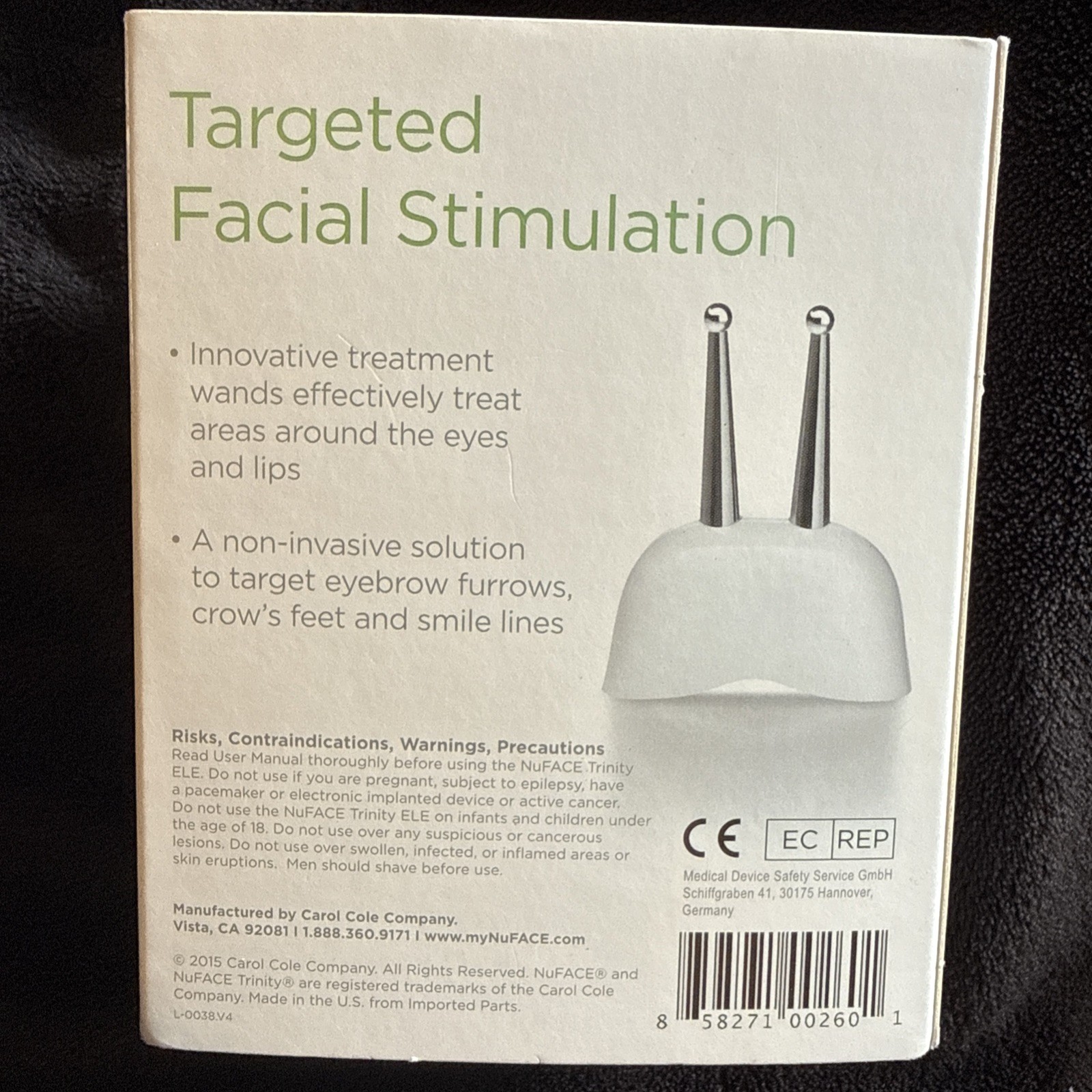The NIB NuFACE ELE Effective Lip & Eye Attachment Trinity Microcurrent Attachment is a facial toning device specifically designed by the brand NuFACE. This attachment is designed to target the lip and eye area, providing microcurrent energy to help improve the skin's tone and elasticity. It is an essential accessory for the NuFACE ELE Trinity facial toning device, allowing users to achieve a more comprehensive and effective skincare routine for the face. Brand new in box Got as a gift and won another from the mandara spa in Hawaii. DEVICE NOT INCLUDED.