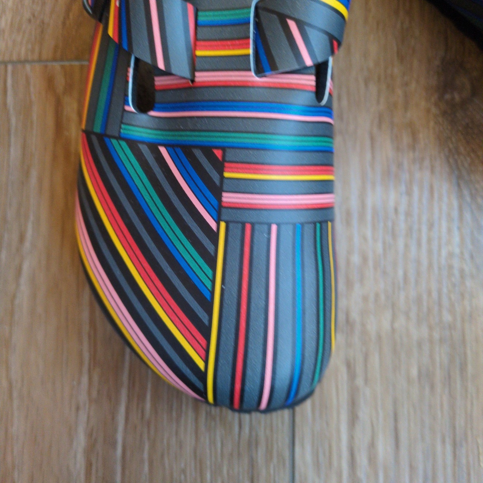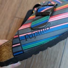 NIB Papillo Birkenstock "Boston" Slip-on clog or mule style shoes. Colorful multi-stripe in a rainbow or colors. Unique artsy, boho vibe, Size: EU 39 (8-8.5 US Women's) Condition: New in box.