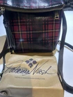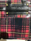 Crafted with the discerning traveler in mind, the Patricia Nash backpack combines style and functionality in a compact design. The exterior boasts a rich blend of red, black, and tan leather, complemented by a chic plaid pattern and a playful tassel accent. The bag's small size, measuring 8 inches in width, 9 inches in height (Closed) and a depth of 3 inches, is ideal for carrying your essentials without the bulk. The interior reveals a refined beige suede lining that adds a touch of elegance and softens the overall aesthetic. The bag features a convenient magnetic closure, ensuring your belongings stay secure while on the go. The backpack also includes a convertible strap, allowing you to switch between a backpack and a hand-held tote, making it a versatile addition to your wardrobe. Complete with an original dust bag, this piece is a testament to the timeless allure and durability of the Patricia Nash brand. Zipper Closure under front flap, back pocket Removable adjustable strap, key clip 1 interior zip pocket & 2 interior slip pockets Box shows wear as seen in picture Retails for 129.00