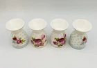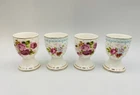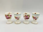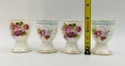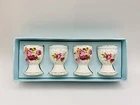 NIB Porcelain Victorian White, Pink, & Blue Roses - Footed Egg Cups 4 pc