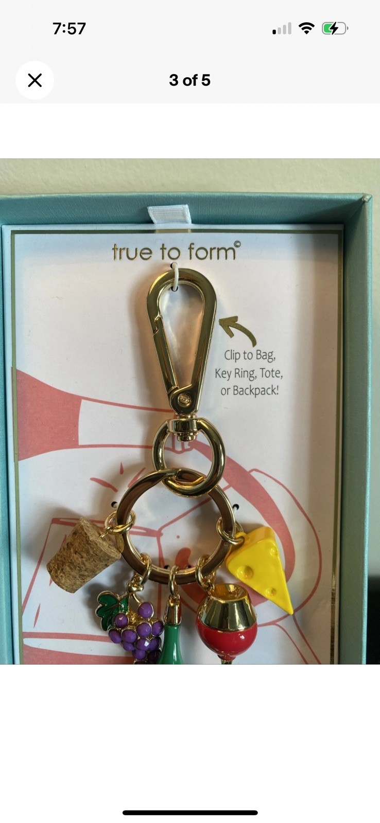 Handmade:NoType:Key ChainColor:MulticolorFeatures:DetachableDepartment:WomenMaterial:MetalCountry of Origin:ChinaItem Length:5 1/2"Theme:Wine, CheeseAccents:CharmsSize:One SizeVintage:NoStyle:ModernPersonalize:NoCharacter Family:CharmedBrand:True Form
