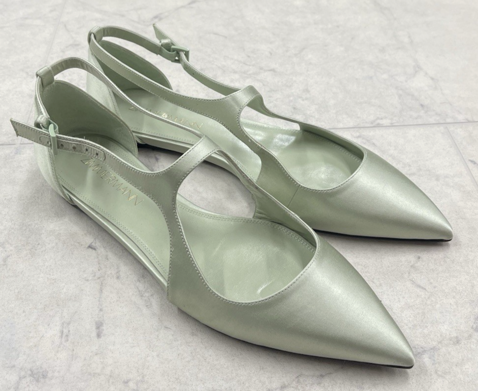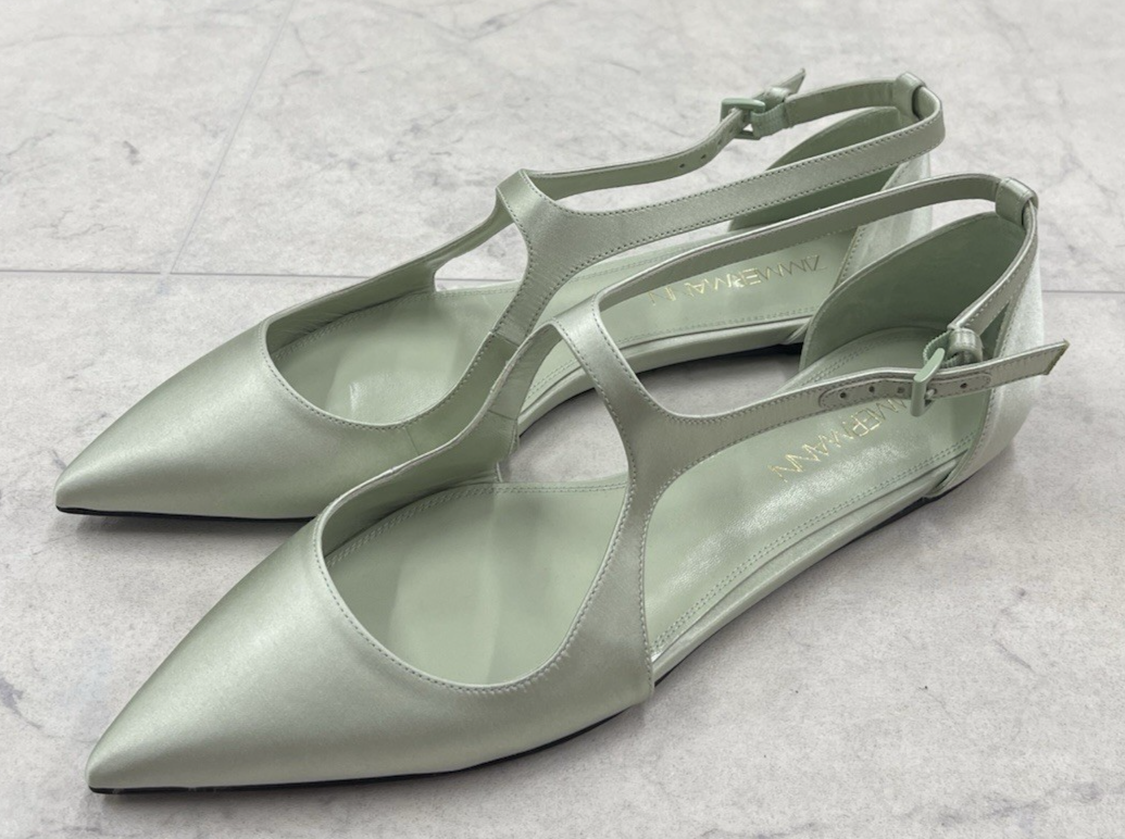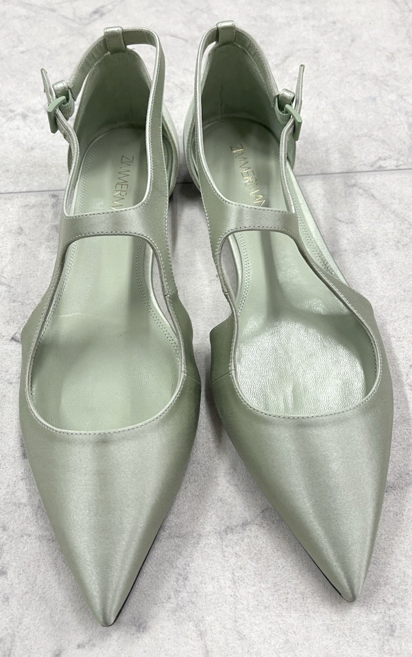 Brand: Zimmermann Size: 38 (US 7.5) Color: Seafoam Condition: New with box Box is a little dirty from storage (does NOT affect shoes) Measurements are approx. : Width: 3.3'' Sole: 10.5'' PLEASE FEEL FREE TO ASK QUESTIONS BEFORE PURCHASE Thank you!
